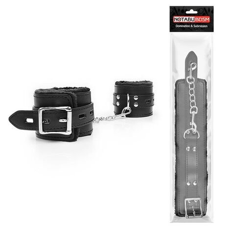 Великолепные оковы под кожу для любителей БДСМ-игр! Внутренняя сторона изделий отделана мехом, который препятствует натиранию кожи. Размер оков регулируется с помощью ремней. Оковы соединяются между собой металлической цепочкой.