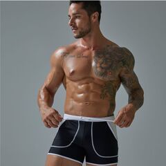 Черные плавки-боксеры с контрастной отделкой.