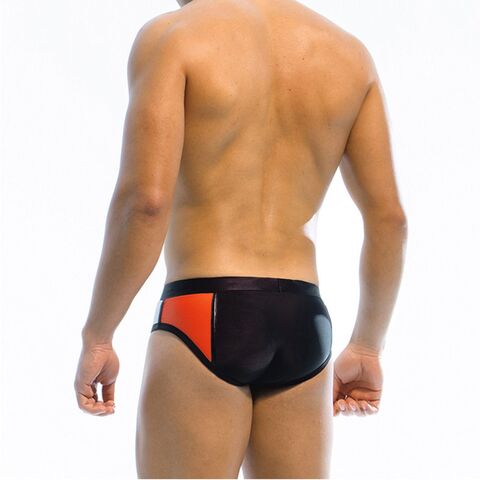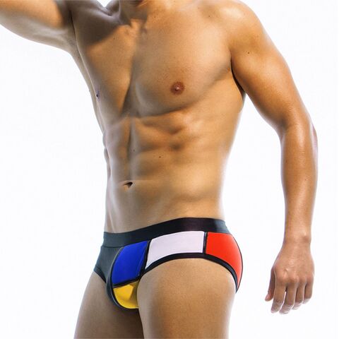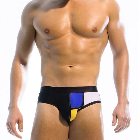 Черные плавки-брифы с яркими цветными вставками.