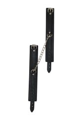 Обезоружить партнера и показать ему, кто сегодня руководит сценарием, можно с помощью одного простого приспособления - поножей. Натуральная ПВХ-материал нежно захватывает ногу в приятный плен, подчеркивая изысканность и пикантность ситуации, и дарит совершенно новые ощущения, связанные с невозможностью полноценно двигаться. Если же жертвой сегодня будете не Вы, то сможете вдоволь насладиться и поиграть с каждой частью тела своего пленника. Поножи очень прочные, поэтому Вы можете прикрепить их к любому элементу мебели, возле которого будет разгораться ваша страстная игра. Ширина - 4 см.