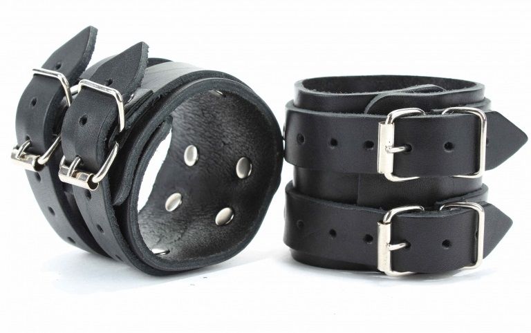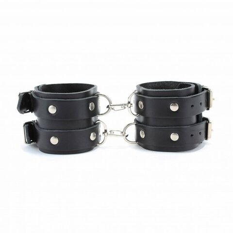 Черные широкие кожаные оковы с двумя пряжками
