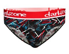 Черные трусы-брифы с разноцветным принтом.