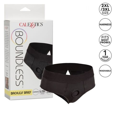 Трусы BACKLESS BRIEF HARNESS имеют очень широкий пояс, мягкую эластичную ткань и усиленное уплотнительное кольцо для максимальной поддержки страпона. Размер трусов - L/XL.