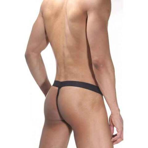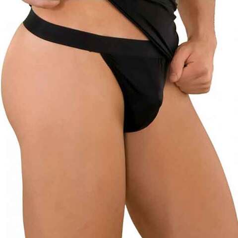 Классические стринги черного цвета из эластичной тянущейся ткани, на широкой резинке для мужчин.