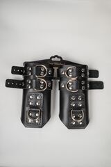 Очень крепкие наручники из натуральной кожи. Предназначены для подвешивания, имеют множество вариантов креплений. Благодаря специальному функционалу можно прикрепить их к крюку, тросу или качели. Они универсальны и многогранны, что позволяет разнообразить любовные игры. Полностью повторяют форму руки, не натирают кожу за счет качественных материалов, надежно фиксируются. Можно использовать и для классической фиксации рук. В комплекте прочная соединительная цепочка с двумя карабинами. Доставляется в фирменной упаковке в виде брендированной деревянной подложки. Длина манжеты - 25 см.