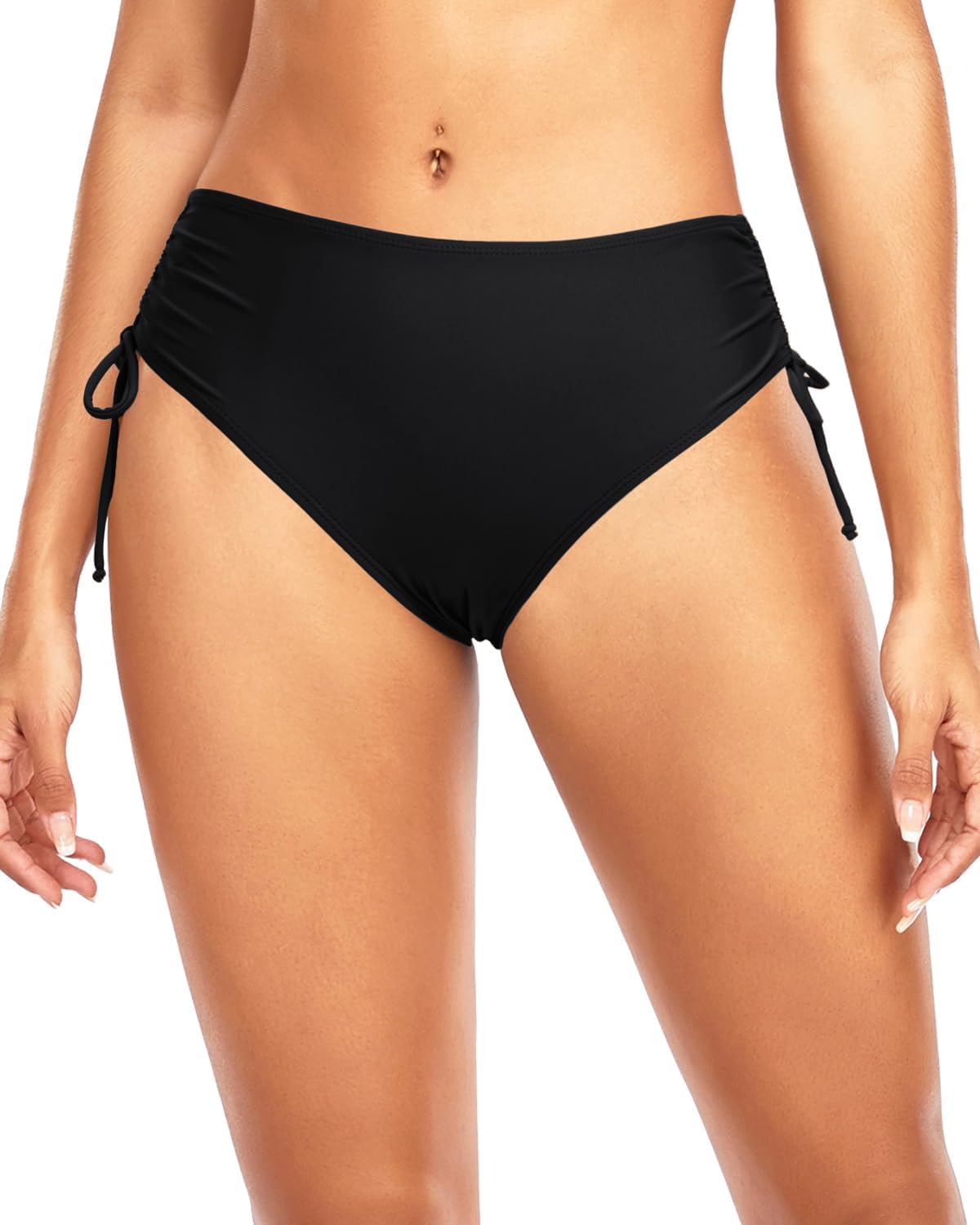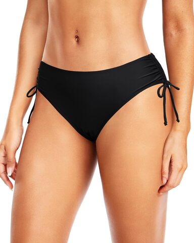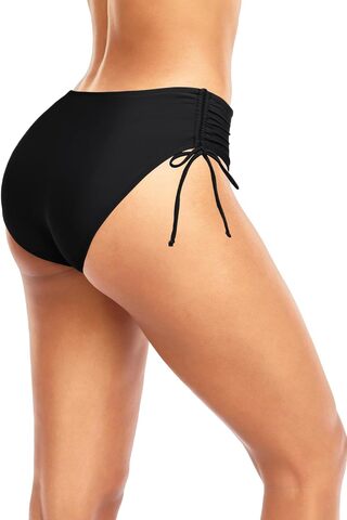 Черные женские плавки с утяжкой по бокам. Быстросохнущая ткань.
