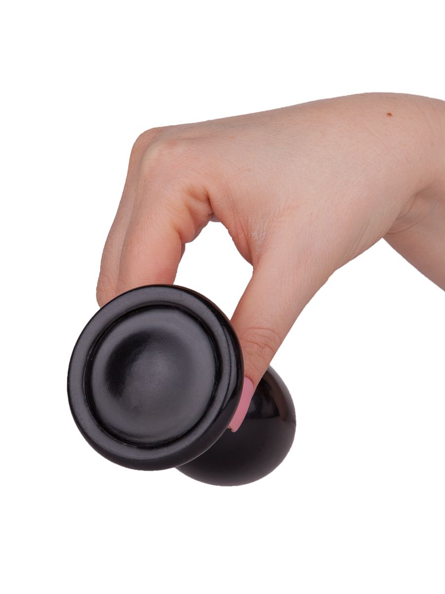 Черный, скользкий, но не как все. Именно так мы опишем индивидуальность нашего продукта. Пробочка получила глянцевую, скользкую лишенную швов, эластичную оболочку. Внутри изделия залит мягкий, гелеподобный, с низкой теплопроводностью материал. Шейка плага получилась достаточно тонкой и плотной за счет более жесткого материала внутри, что обеспечивает хорошую фиксацию. Рабочая длина - 8,5 см.
