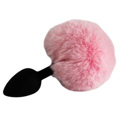 Черный анальный плаг Vander с розовым пушистым хвостиком. Выполнен из силикона. Рабочая длина - 6 см.