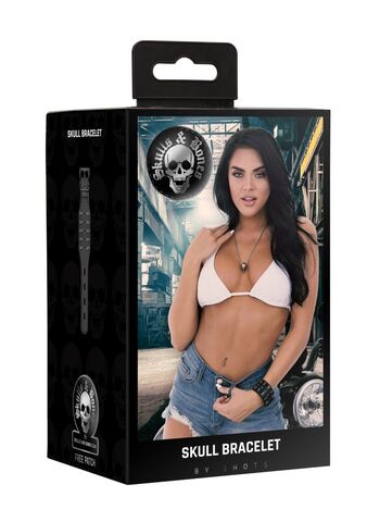Браслет изготовлен из экокожи с металлической фурнитурой. Имеется 4 положения для регулировки закрепления браслета на руке. Длина манжеты - 27 см., ширина - 4 см.