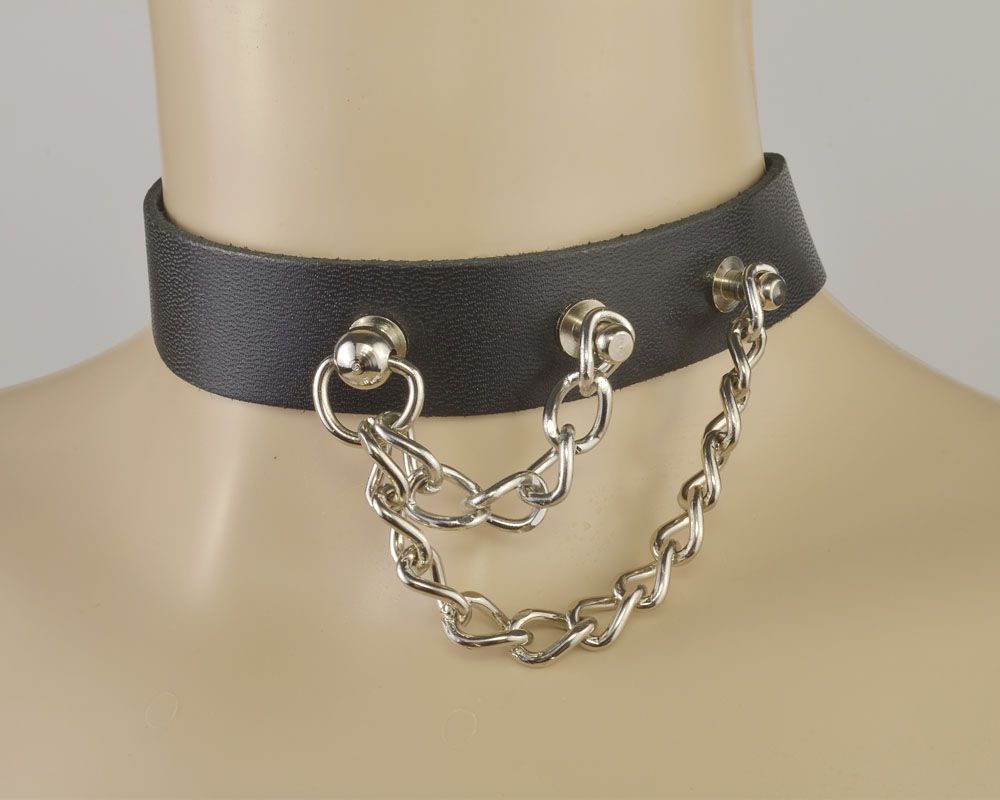 Эффектный ошейник изготовлен из натуральной кожи. Размер регулируется при помощи металлической пряжки. Металлическая фурнитура имеет никелевое покрытие.