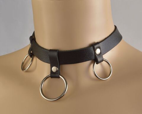 Черный чокер Соло с 3 кольцами