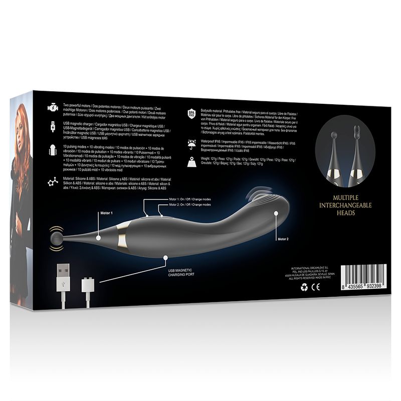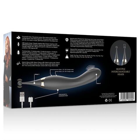 Уникальный вибратор для женщин, созданный для двойной стимуляции и максимального удовольствия. Эргономичная форма идеально направляет игрушку на точку G и клитор, обеспечивая интенсивную и точную стимуляцию благодаря встроенному мини-шарику с волнообразными движениями. Два мощных мотора позволяют работать одновременно или отдельно, предлагая 10 режимов пульсации и 10 режимов вибрации, которые можно комбинировать для создания до 20 вариантов ощущений. Рельефная структура и гладкая поверхность из гипоаллергенного силикона делают введение мягким и комфортным, а округлый наконечник точно воздействует на все эрогенные зоны: клитор, малые половые губы, соски или промежность. Вибратор полностью водостойкий (IPX6), что позволяет использовать его в душе или ванной, и оснащён встроенным аккумулятором с магнитной USB-зарядкой: полный цикл зарядки занимает около 120–130 минут, обеспечивая до 100 минут непрерывного удовольствия. Изготовлен из медицинского силикона.