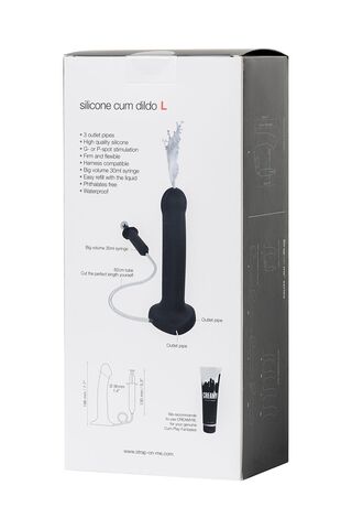 Черный фаллос с имитацией семяизвержения Silicon Cum Dildo. Гибкий ствол и анатомически идеальная эргономика. Вас порадует приятный бесшовный дизайн и нежнейшее покрытие Soft-touch. И вы останетесь в восторге от обостряющей ощущения функции семяизвержения. Просто наполните шприц лубрикантом или жидкостью и воспользуйтесь им в момент кульминации. Увеличенная до 82 см длина трубки. Большой объем шприца (30 мл для максимальной реалистичности процесса семяизвержения). 3-слойный материал: гибкий внутренний стержень, жесткий силиконовый слой и дополнительный верхний слой из гипоаллергенного, бархатистого на ощупь силикона Soft-touch. Мешочек для хранения в комплекте. Может использоваться для вагинальной или анальной стимуляции, а также в качестве насадки для трусиков с креплением кольцами.