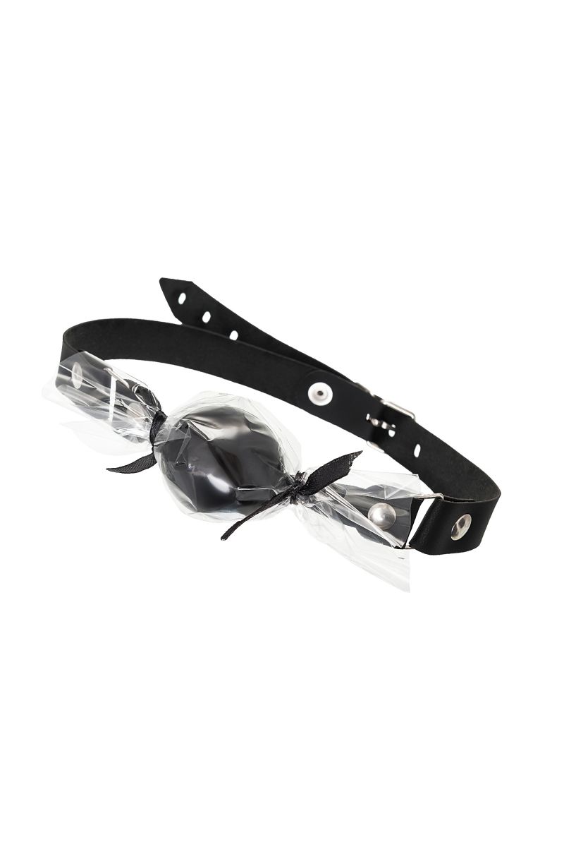 Черный кляп-леденец на кожаных ремешках со вкусом бейлиз