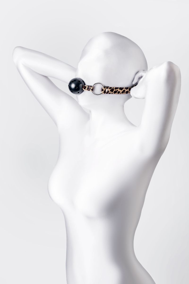 Искусство красноречивого взгляда – все что остается, ведь невозможно произнести ни слова в этом кляпе – только слушать и подчиняться. Можно скрежетать зубами по пластику, но вдруг Доминант рассердится и накажет еще сильнее? Специальные отверстия для воздуха делают ношение кляпа безопасным и комфортным. Удачное сочетание леопардовой расцветки и металлической фурнитуры делает образ сексуальным и загадочным, добавляя в образ элемент хищника. Ремешок фиксируется на голове металлической пряжкой и подходит для любого размера головы. Игра в послушную зверюшку или непокорного хищника…. Уже представили? Дополните образ аксессуарами той же расцветки и наслаждайтесь обществом друг друга. Диаметр шарика - 4,5 см.