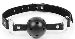 Черный кляп-шарик на регулируемом ремешке с кольцами