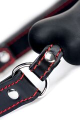 Силиконовый кляп-трензель на ремешке из PU-кожи достаточно большой, чтобы лишить возможности разговаривать. Но мягкий материал комфортно прикусывать без вреда для зубов. Ремешок с большим количеством отверстий подходит для любого объема головы и фиксируется замочком, входящим в комплект.