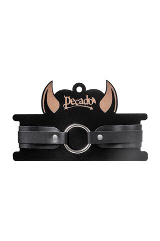 Собираетесь порадовать своего Господина? Тогда без чокера от Pecado точно не обойтись. Черный, лаконичный, он придаст образу роскошный и возбуждающий вид. Благодаря ширине в 3 см и скруглённым краям, аксессуар хорошо сидит как на женской, так и на мужской шее. Натуральная кожа тактильно приятна к телу, а ее терпкий аромат возбуждает. Надежная застежка-пряжка комфортно регулируется под необходимый размер. Благодаря ей девайс хорошо фиксируется и не болтается во время игр. Аксессуар декорирован качественной металлической фурнитурой. Большое стальное кольцо спереди изделия притягивает взгляд. К нему возможно присоединить как поводок, так и цепь любой длины. Ширина - 3 см.