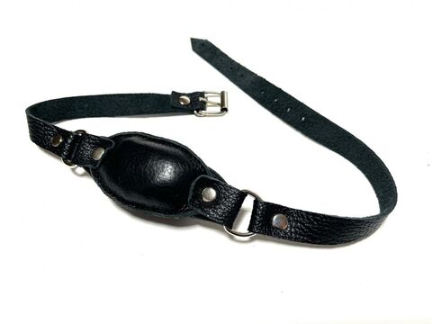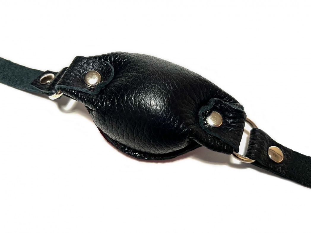Качественный и удобный кляп, выполненный из натуральной кожи черного цвета. Благодаря наполнителю средней жесткости этот кляп будет комфортен в использовании. Аксессуар декорирован сварной металлической фурнитурой. Обхват удобно регулируется с помощью металлической пряжки. Отличный аксессуар для любовной игры и новых ощущений! Размер кляпа - 9х5 см.