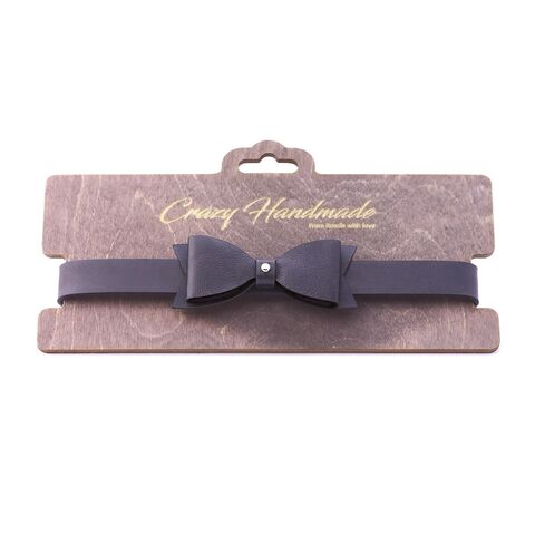 Однослойный чокер из натуральной кожи. Декорирован трехслойным кожаным элементом в виде галстука-бабочки, прочно закрепленным на чокере. Ширина основы - 3 см.