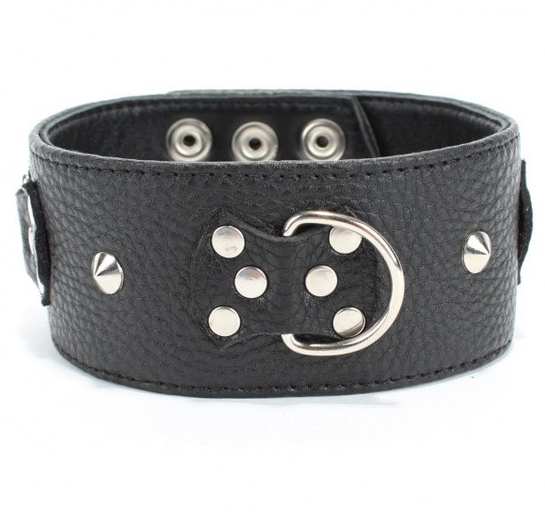 Ошейник выполнен из натуральной кожи черного цвета, декорирован заклепками и вставками в виде бабочек. Ошейник фиксируется металлическими кнопками, позволяющими подобрать нужный размер, подойдет на обхват от 32 до 37 см. Стильный аксессуар украсит любую вашу фантазию. Ширина - 5 см.