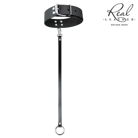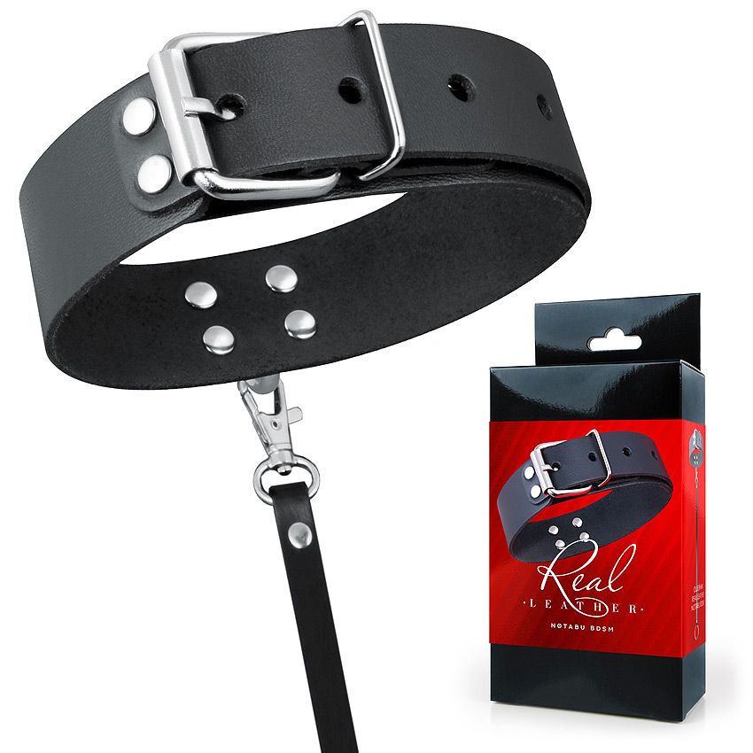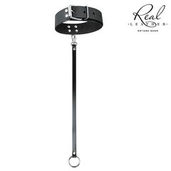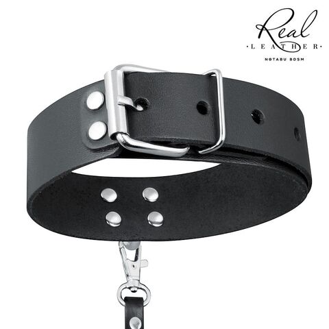 Черный кожаный ошейник с ремешком