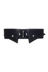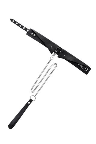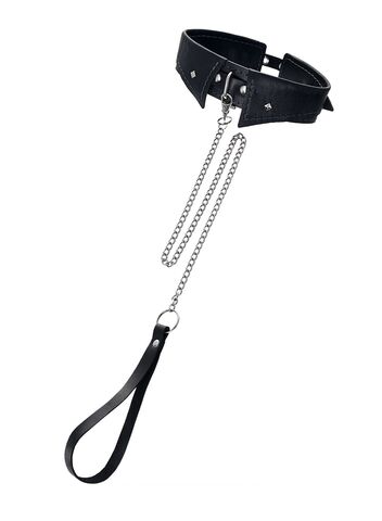 Черный кожаный ошейник-воротник с поводком