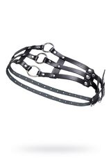 Сексуальный пояс от Pecado создаст будоражащий образ для БДСМ-сессии. Чёрные тонкие ремешки переплетены и соединяются в изящный аксессуар. Ремешки выполнены из мягкой, натуральной черной кожи вручную. Материал тактильно приятный и износостойкий. Металлические заклёпки по всей поверхности обеспечивают надёжность девайса. 3 стальных кольца по центру добавляют дерзости атрибуту. Идеальная посадка на тело регулируется с помощью металлической застежки. Портупея используется для сексуальных, ролевых БДСМ-игр. А также в качестве стильного аксессуара для тематических вечеринок и фотосессий. Универсальный размер.