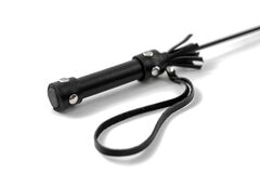 Стек из черной кожи. Строгий и лаконичный. Истинный атрибут власти и доминирования. Имеет удобную ручку с петелькой для руки. На конце стека находится кожаный шлепок. Длина ручки - 13 см., диаметр - 2 см.