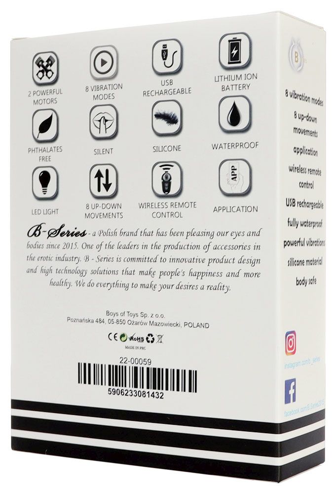 Универсальный современный массажер оснащен двумя моторчиками, которые обеспечивают чрезвычайно сильную и равномерную вибрацию, а движение вверх-вниз (поступательное) добавляет еще больше удовольствий. Массажером можно управлять с помощью пульта дистанционного управления. Водонепроницаем. 8 режимов вибрации. Зарядка осуществляется с помощью USB. Рабочая длина - 9 см.