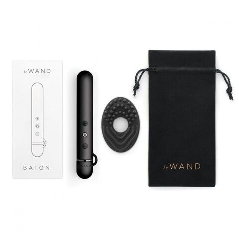 Черный мини-вибратор Le Wand Baton с текстурированной насадкой - 11,9 см.