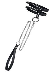 Стильная и надежная эмблема подчинения – ошейник из двух ремешков производства Impirante. Материал изделия - чёрная натуральная кожа, который не раздражает поверхность тела. Атрибут обеспечивает хорошую посадку на шее. Комфортно фиксируется под нужный размер, благодаря пяти люверсам и крепкому замку. К стальному кольцу, с помощью карабина крепится надежный поводок. Ширина ошейника - 4,9 см.