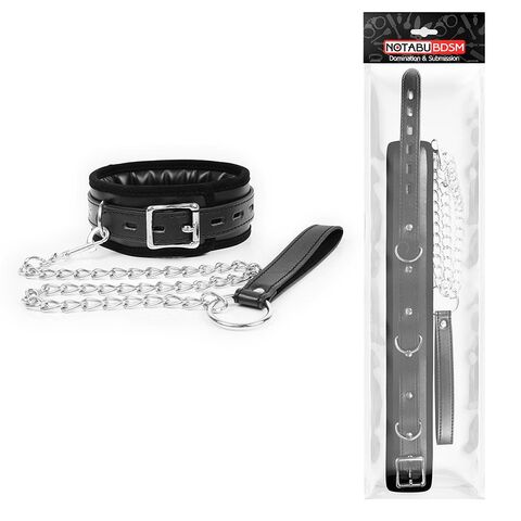 Великолепный БДСМ-аксессуар для любителей нестандартных эротических забав. В комплект входит ошейник с возможностью регулировки размера с помощью ремешков и металлическая цепочка-поводок с ручкой-петлёй, который при желании можно отстёгивать. Внутренняя поверхность ошейника имеет мягкую накладку, препятствующую натиранию кожи.