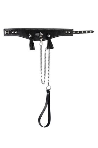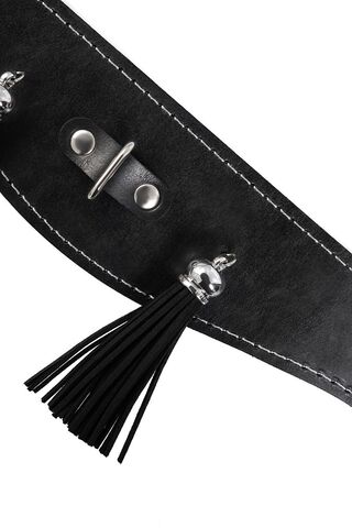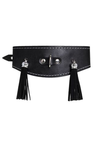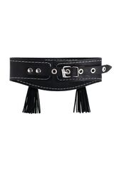 Добавить бурю эмоций в Ваши эротические сценарии можно с помощью высокого ошейника с кисточками от Impirante. Полностью ручная выделка безопасного прочного материала придает комфорт изделию. Аромат кожаной ленты вокруг шеи вызывает особенный трепет в теле. Атрибут удобно опоясывает шею и фиксируется необходимым размером. Две пикантные кисточки надежно закреплены к внешней поверхности ошейника. Легко одевать, а также снимать. Вся металлическая фурнитура девайса высокого качества. В комплект входит поводок из цепи с кожаной ручкой. Ширина ошейника - 4 см.