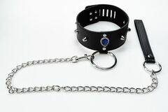 Ошейник в БДСМ занимает особое место как аксессуар с наиболее глубоким психологическим значением. Он - символ подчинения и рабства. Достаточно надеть на вашего партнера ошейник и сразу все роли распределены. Останется лишь насладиться волнующим приключением. Ошейник с шипами - жесткий атрибут, который понравится опытным любителям БДСМ. Он обострит ваши ощущения от игры и придаст ей жестокости и страсти. Поводок из металлической цепи со специальной петлей для руки крепится к ошейнику при помощи карабина. Застежка ошейника выполнена в виде навесного замочка с ключом. Ширина ошейника - 5 см.