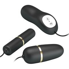 2 виброяйца с электростимуляцией на пульте. Есть 7 режимов вибрации и 3 режима электоростимуляции. Длина вибройяца - 6,5 см., диаметр - 2,6 см.