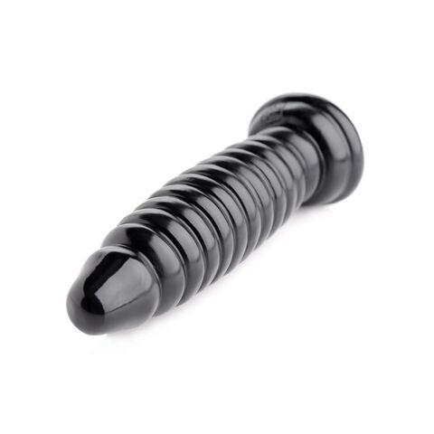 Черный ребристый анальный фаллоимитатор - 17,8 см.