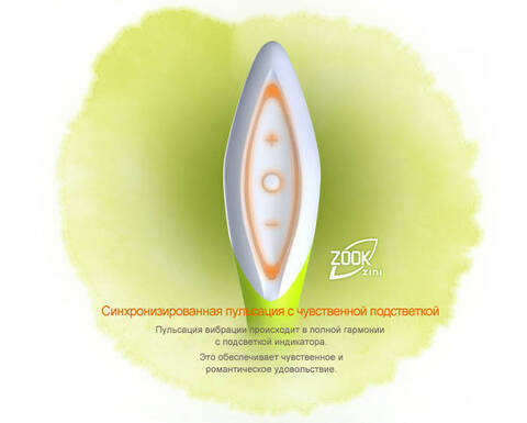 ZINI ZOOK - первый эргономичный вибратор нового поколения с уникальным изгибом 23,5 градуса и объемной формой, создающей ощущение заполненности. В дизайне использован мотив тропического бамбука, листок которого нежно ласкает вульву.