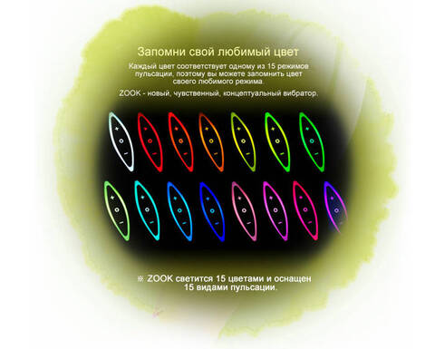 Каждый из 15 вариантов вибрации и пульсации соответствуют определённому цвету, что позволяет установить любимый режим даже в темноте.