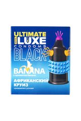 Пригласи ее в путешествие к первобытным оргазмам. Но не забудь взять с собой в приключение «Африканский круиз» с ароматом банана. Брутальный латексный презерватив черного цвета с дополнительной стимуляцией пробудит потаенные инстинкты и желания. Стимулирующие усики доставят наивысшее наслаждение, а дивный аромат банана добавит пикантности. Новые ощущения и разнообразие гарантированы. Номинальная ширина - 52 мм.
