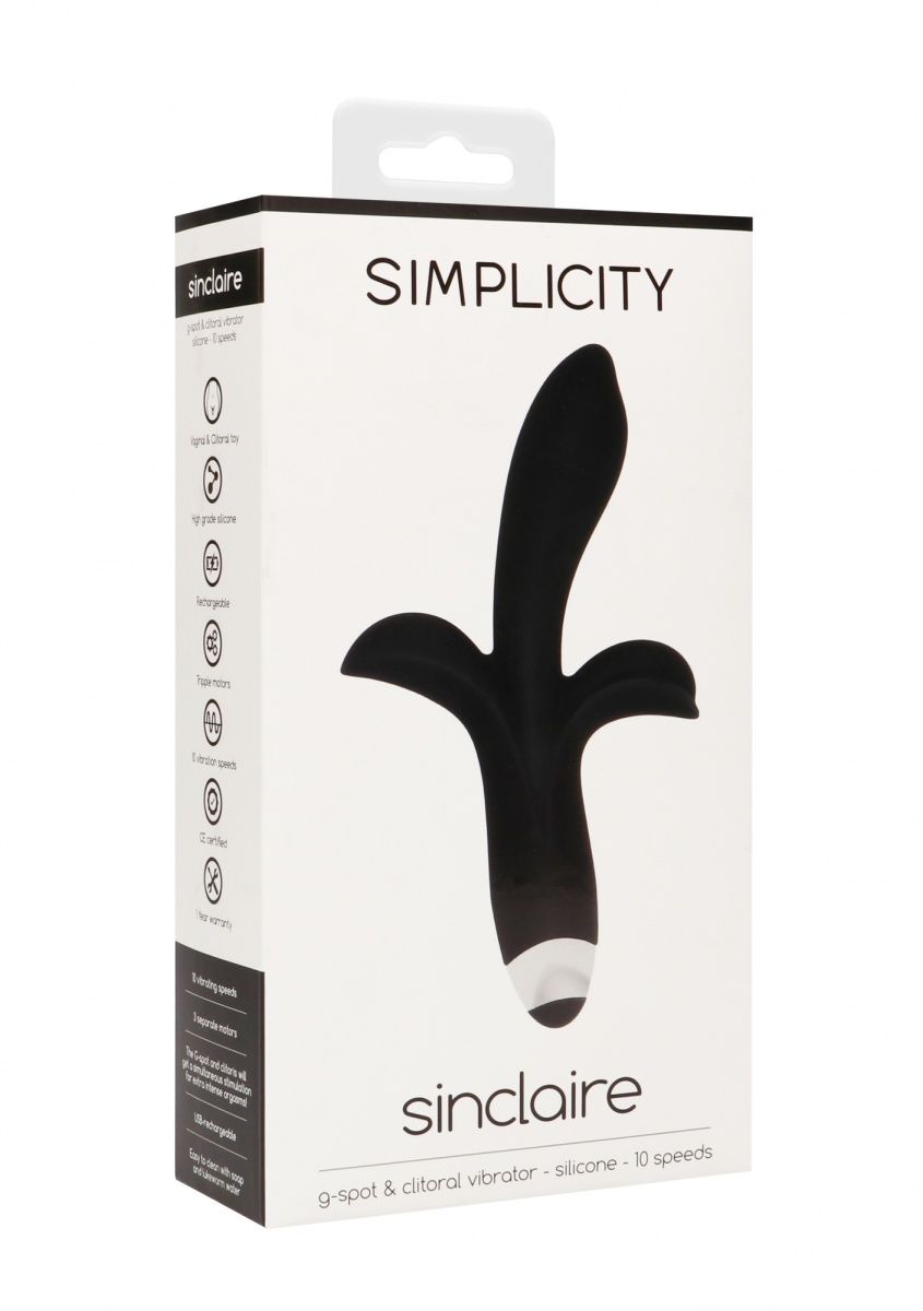 Вибратор классической формы с загнутой головкой и двумя отростками. Изготовлен из гладкого материала, приятен на ощупь. Имеет три отдельных моторчика и 10 режимов вибрации. Режимы переключаются при помощи кнопки в основании игрушки. Заряжается от USB. Рабочая длина - 11 см.