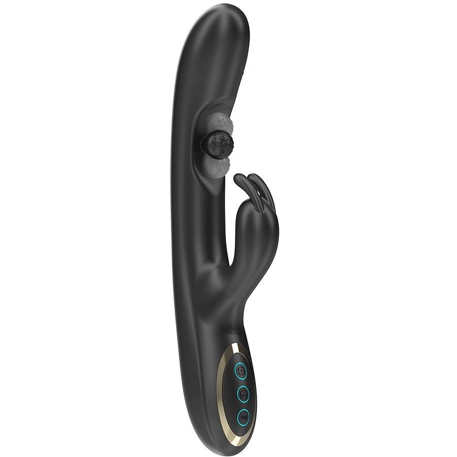 Черный вибратор-кролик с вращающимся шариком - 24,5 см.