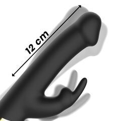 Вибратор-кролик с 2 мощными моторами обеспечивает одновременную стимуляцию точки G и клитора, а функция ротации усиливает глубину и точность воздействия, помогая быстрее достичь яркой разрядки. Устройство предлагает расширенный диапазон настроек: 5 скоростей вращения и 10 частот вибрации — от мягкого, едва уловимого пульса до экстремально интенсивных волн. Вибратор выполнен из ультра-мягкого медицинского силикона, безопасного для тела, гипоаллергенного и не содержащего фталаты. Эргономичная форма идеально повторяет анатомию тела, обеспечивая точечную стимуляцию и максимальный комфорт. Ёмкий аккумулятор с магнитной USB-зарядкой позволяет наслаждаться часами удовольствия без перерывов, а влагозащита IPX6 делает вибратор полностью подходящим для использования в душе. Рабочая длина - 12 см.