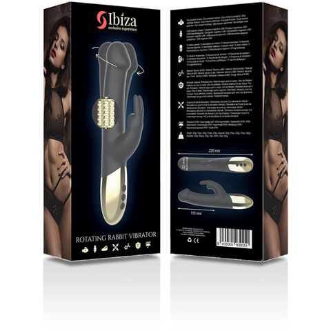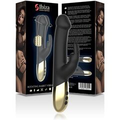 Черный вибратор-кролик с вращением бусин - 22 см.