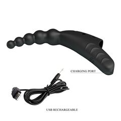 Черный вибратор на палец Jordin. Кончик выполнен в виде цепочки шариков. Перезаряжаемый.