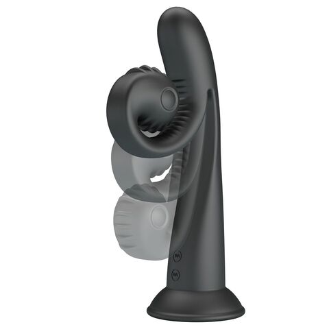 Черный вибратор на присоске с закрученным клиторальным отростком - 20 см.