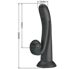 Черный вибратор на присоске с закрученным клиторальным отростком - 20 см.
