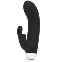 Черный вибратор с клиторальным отростком Greedy Girl Mini Rabbit Vibrator. Перезаряжаемый. 7 режимов вибрации и 3 скорости. Головка изогнута для g-стимуляции. Рабочая длина - 12,7 см.