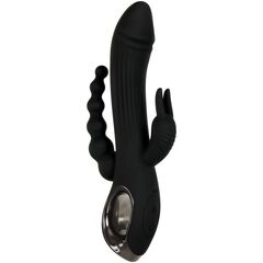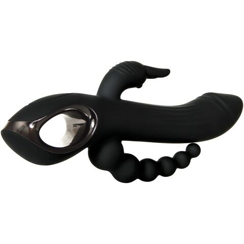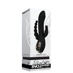 Черный вибромассажер с тройной стимуляцией Trifecta - 21,6 см.