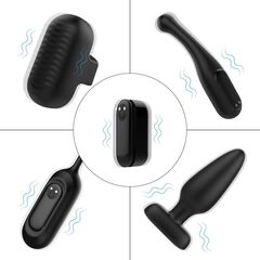 Этот набор (виброэлемент, анальная пробка, насадка на палец, виброяйцо, вибратор с тонким кончиком) - отличный вариант, чтобы испытать новые ощущения от секса. Набор удивит вас своим компактным внешним видом, огромным функционалом и 9 режимами вибрации. Максимально прост в использовании, просто поместите виброэлемент в игрушку, которая вам понадобится, и пользуйтесь ей. Вибромотор перезаряжаемый и имеет уровень защиты IPX7- это значит он полностью водонепроницаемый. Длина виброэлемента - 4,7 см., диаметр - 1,9 см.